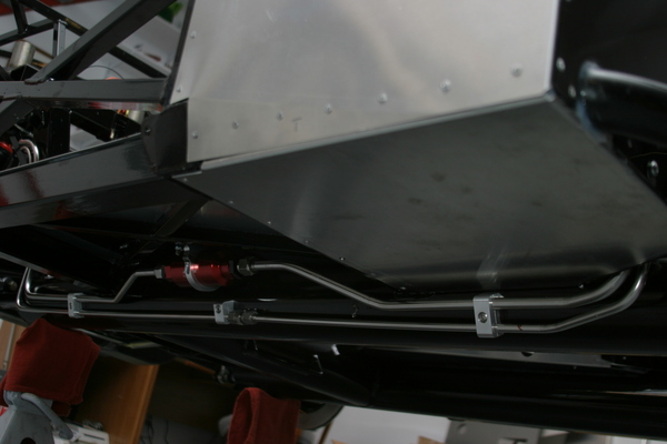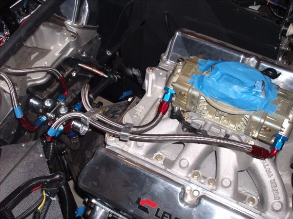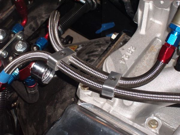 Dual line clamps for AN-10 braided hose. This installation is a fuel injected/